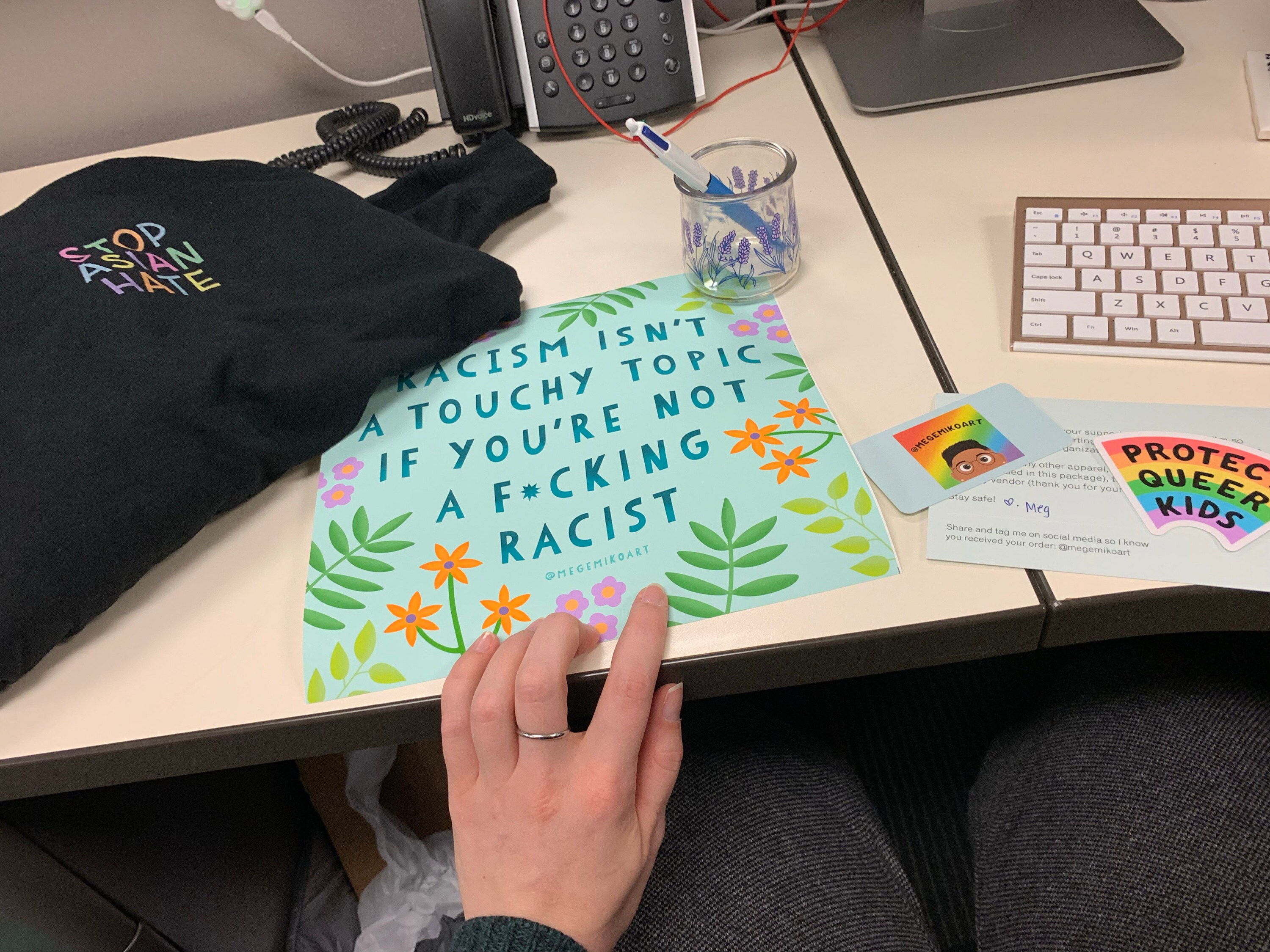 80% of the proceeds are donated to the AAPI Community Fund, which benefits: Mekong NYC, Asian Health Services, Oakland Chinatown Ambassadors Program, AAPI Women Lead, Khmer Girls in Actions, and many more. The remaining 20% is goes towards the printing, production, and manufacturing of this design by MegEmikoArt, an Asian American trans non-binary artist.